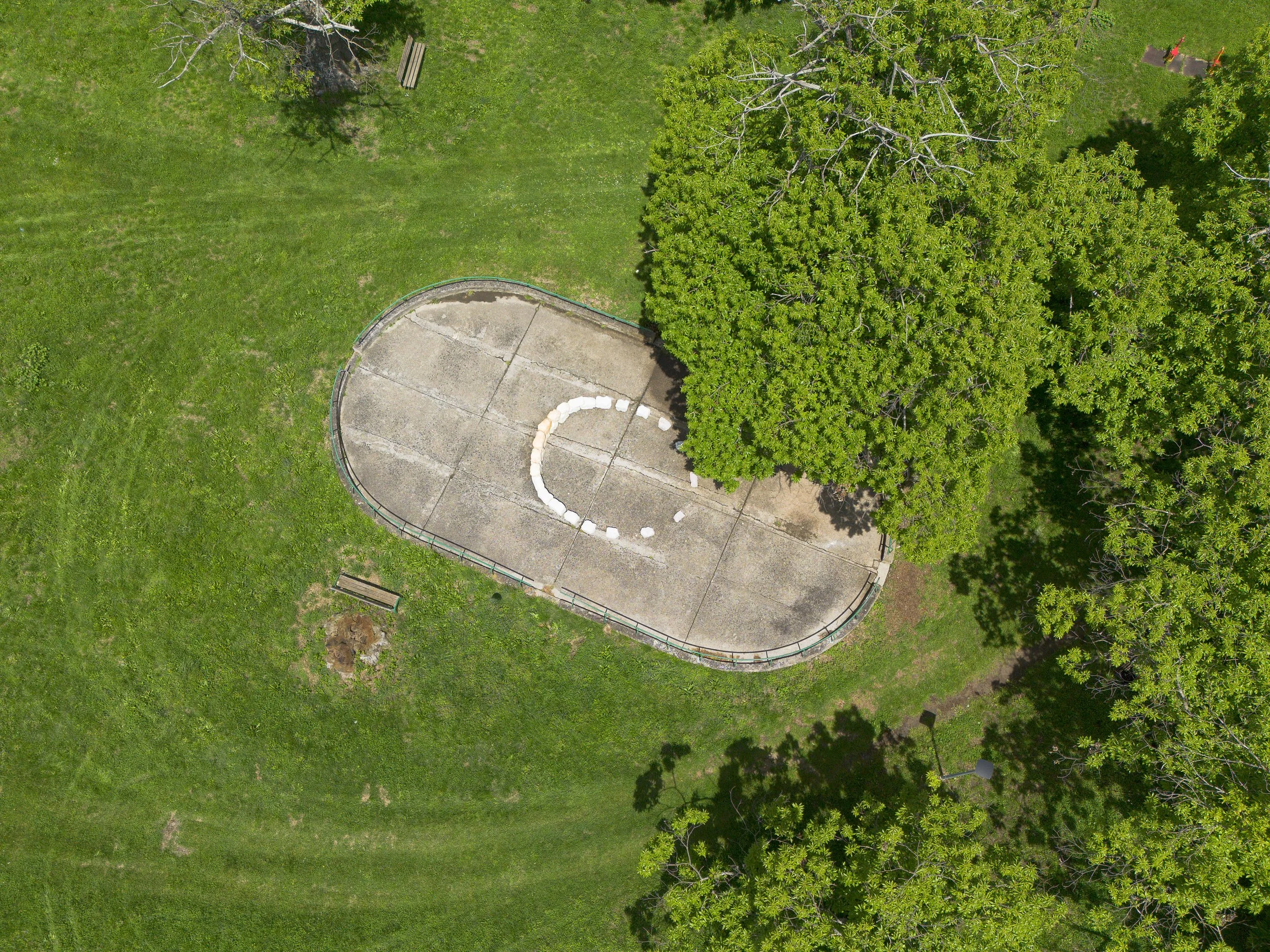 Si tratta di un’applicazione della Kenoscromìa, pratica ideata dall’artista nel 2019, finalizzata a connettere visivamente più luoghi attraverso una visione zenitale. La codifica della realtà avviene a partire da una vibrazione cromatica nel e del vuoto, qui generata dalle viscere colorate della Terra.