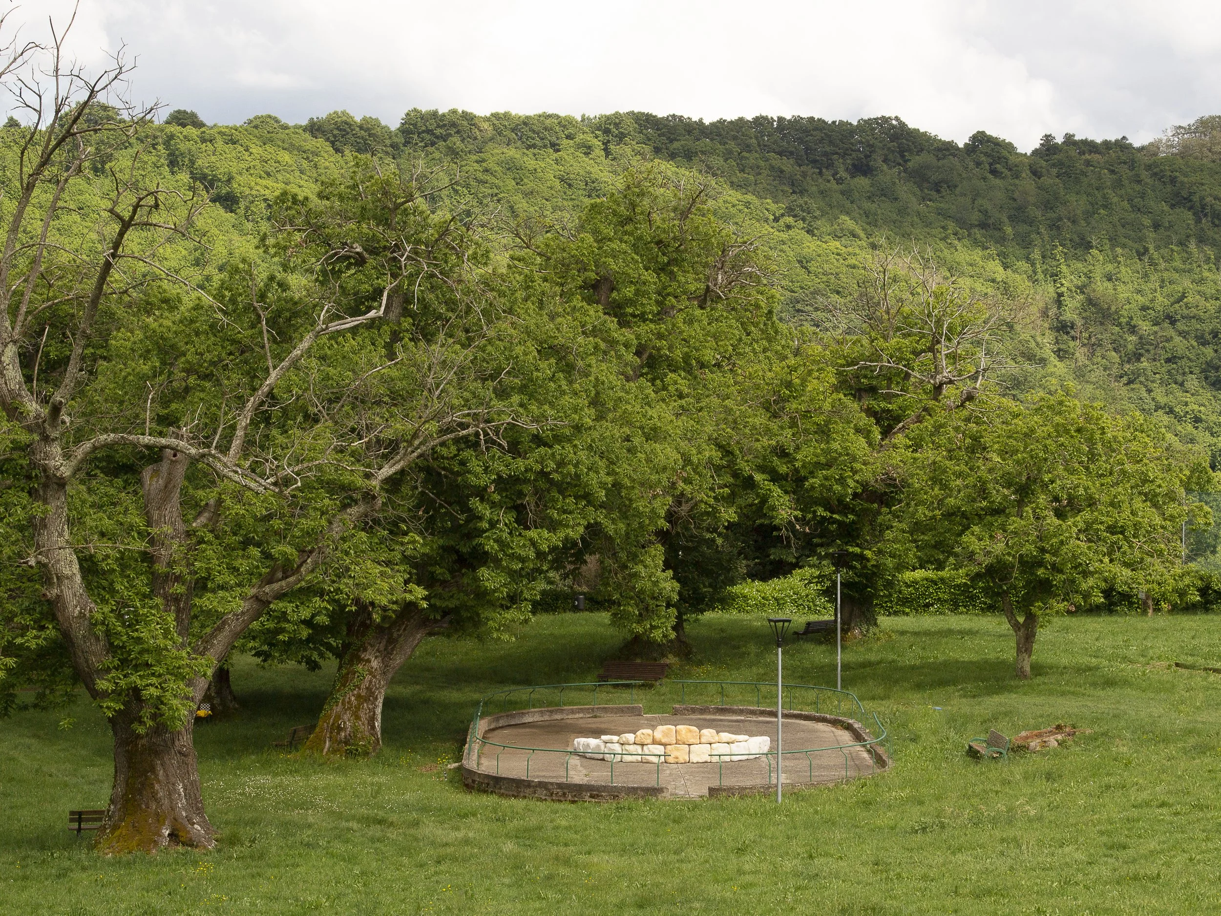 Con il termine site-specific, Gambirasio intende intercettare alcune delle forze trasformative in atto, instaurando con esse un dialogo espressivo ed emotivo. Ne scaturisce un processo concreto, capace di connettere in profondità luoghi altrimenti distanti, in una sorta di gemellaggio vulcanico. Il legame si materializza in elementi scultorei e pittorici che fungono da portali verso una nuova dimensione connettiva. I portali si rifanno alla forma originaria e simbolica della Caldera di Latera, reinterpretata ogni volta in modi sorprendentemente diversi – talvolta permanenti, talvolta effimeri.