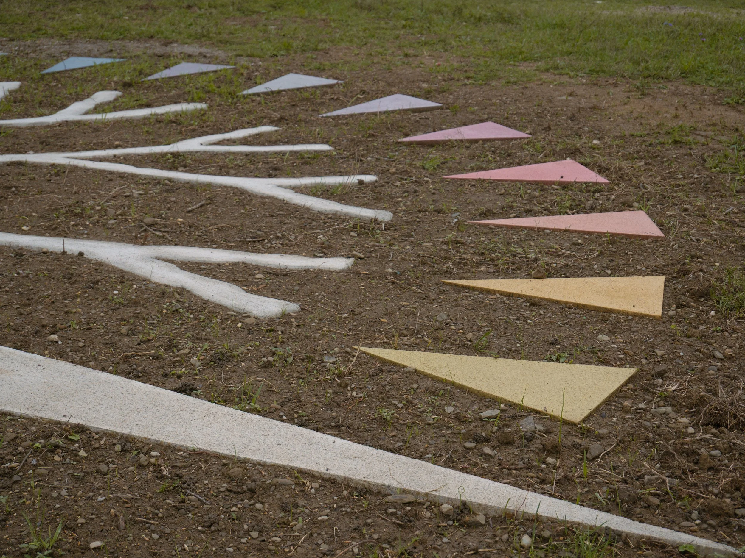 Non c’è comprensione, non c’è visione se non attraverso il movimento che l’opera sollecita: dalle formelle colorate che invitano al primo passo, passando per tortuosi sentieri tra i fili d’erba - cambia la prospettiva!-, fino all’incontro con uno spigoloso labirinto.